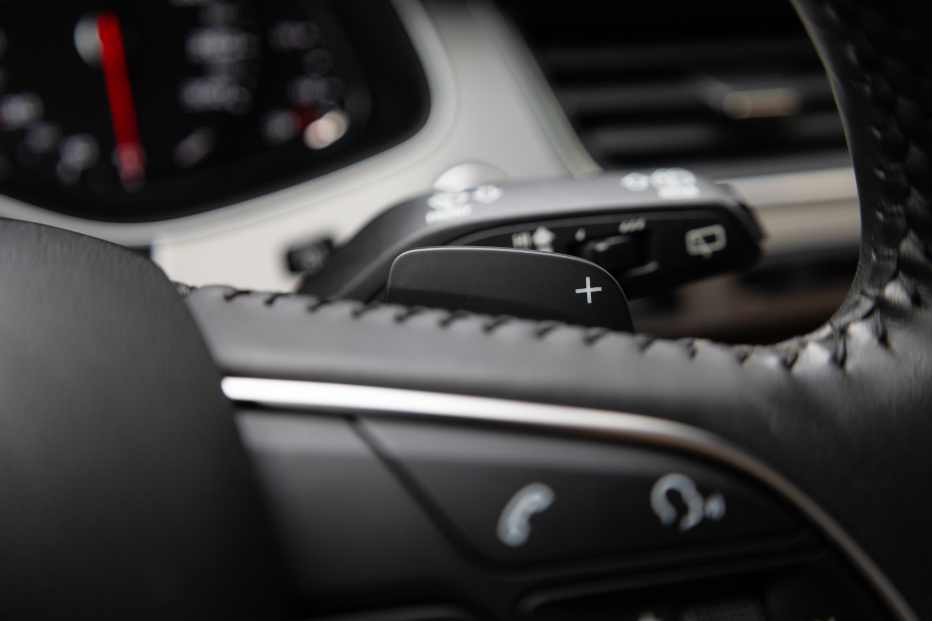 - Sportstuurwiel, driespaaks multifunctioneel in leder met schakelpaddels